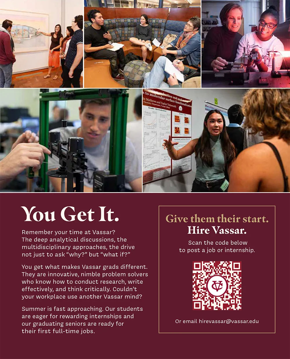 We welcome comments on contents of the magazine. Please send your Letters to the Editor to vq@vassar.edu.